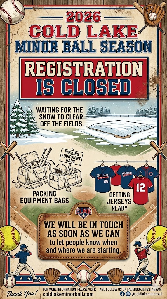 We are gearing up for a great season! Please be patient as we will cannot take the fields until the City of Cold Lake has given us the green light on this. We will contact all via mass email when we are ready to get going.